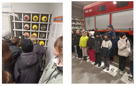 В ходе проекта учащиеся посетили пожарную часть № 19/4 с. Косулино. Здесь работники пожарной части провели познавательную экскурсию по территории части. Рассказали о рабочих буднях своей трудовой деятельности, показали технику, инструменты и оборудование, используемую в их работе, а также провели ребят по всем помещениям и полосе препятствий пожарной части. Школьники с огромным интересом примеряли на себя спецодежду и спецобувь пожарных.