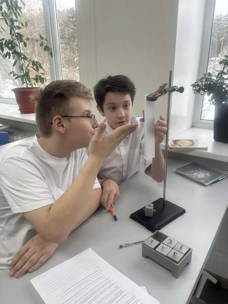 20 октября 2923 года учитель физики Коровина Мария Владимировна в 10 классе провела лабораторную работу «Изучение движения тела, брошенного горизонтально», направленную на изучение движения тела, брошенного горизонтально под разными углами наклона. Учащиеся измеряли дальность и время полета металлического шарика по наклонному желобу. Шарик падал на копировальную бумагу, оставляя на ней след. Проводилось две серии опытов с разными наклонами желоба. После чего учащиеся строили графики движения, которые позволяли наглядно увидеть, сравнить и описать характер движения шарика.