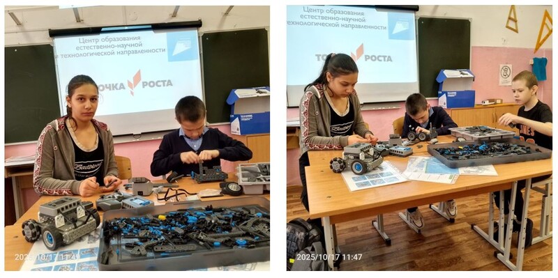 17 октября 2025 года учитель технологии Антонюк Татьяна Александровна провела урок по роботоконструированию для учеников 5 классов в центре «Точке роста».