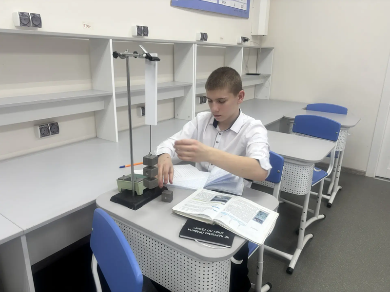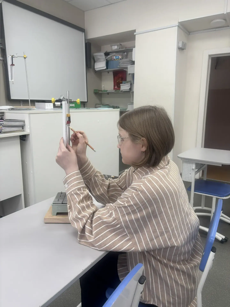 21 апреля 2025 года учитель физики Коровина Мария Владимировна провела практическую работу в 7 классе, направленную на ознакомление с простым механизмом «рычаг». В работе использовались грузы, штатив и рычаг. Учащиеся на практике проверяли при каком соотношении грузов и плеч рычаг будет находиться в равновесии. Так же проверяли соблюдается ли правило моментов. Необходимо было опытным путем подобрать такое расстояние грузов и противовеса, чтоб рычаг находился параллельно поверхности парты.