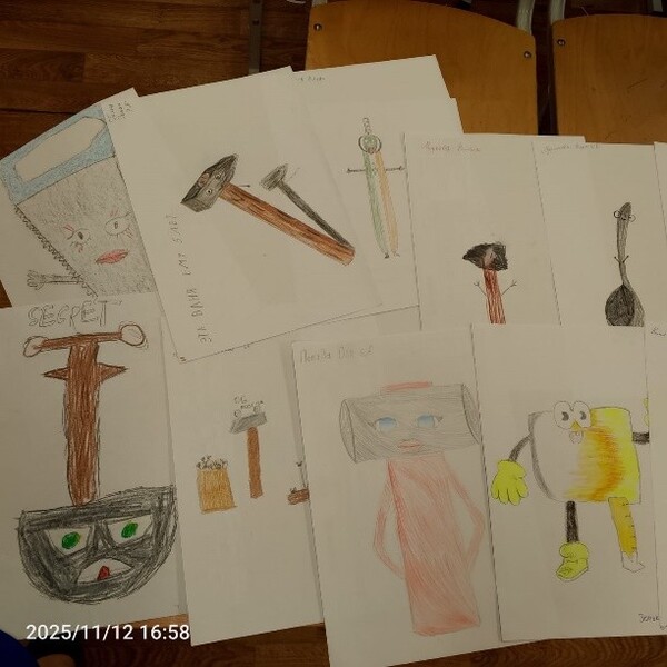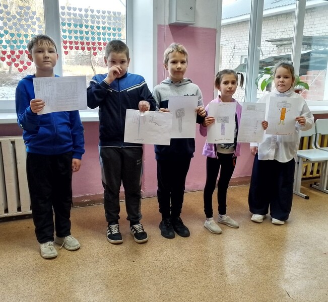 Перед ребятами встала задача «оживить» инструмент, который может использоваться на уроках технологии, дорисовав ему глаза, руки, ноги. Ребята проявили богатую фантазию, «оживляя» самые разные предметы: