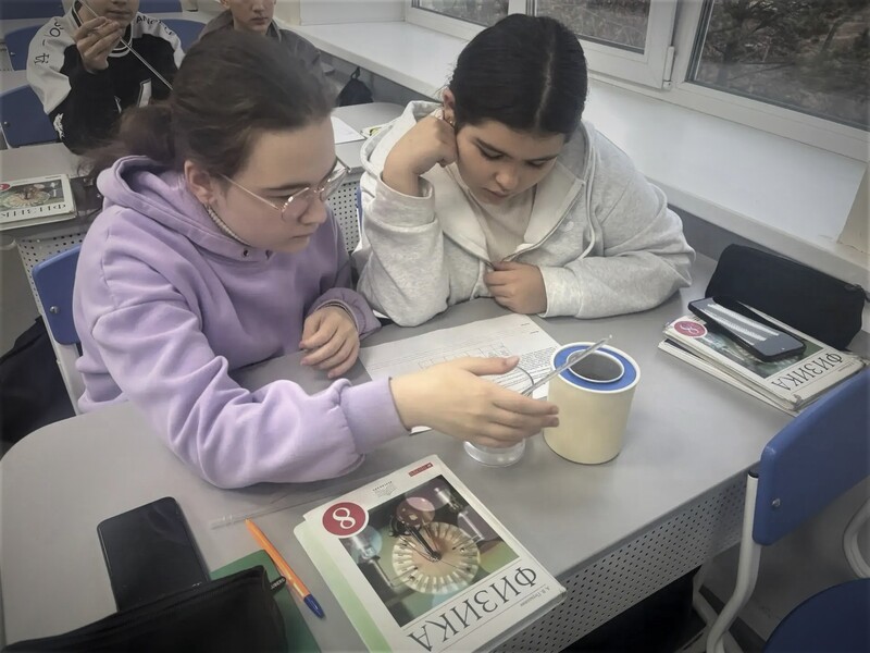 27 ноября 2025 года учитель физики Коровина Мария Владимировна в 8 классах провела практическую работу «Сравнение количеств теплоты при смешивании воды разной температуры»
