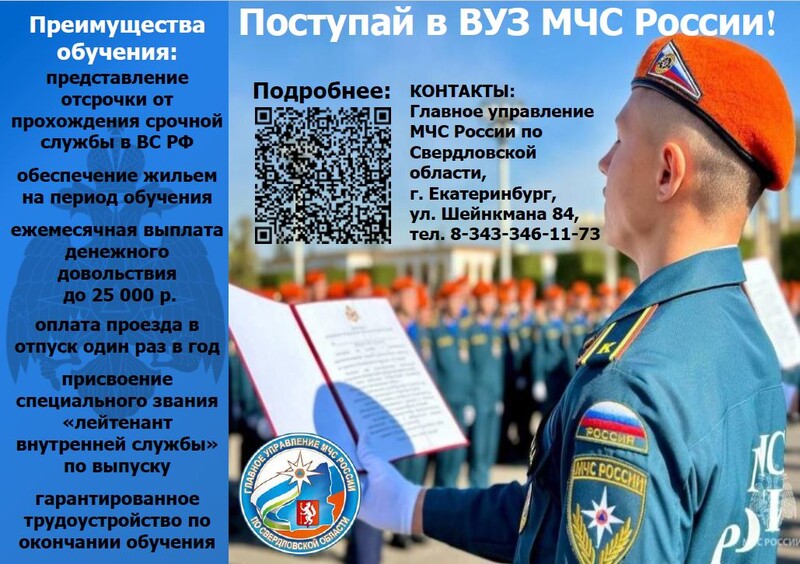 - -гарантированное назначение на должность в структурных подразделениях Главного управления МЧС России по Свердловской области.