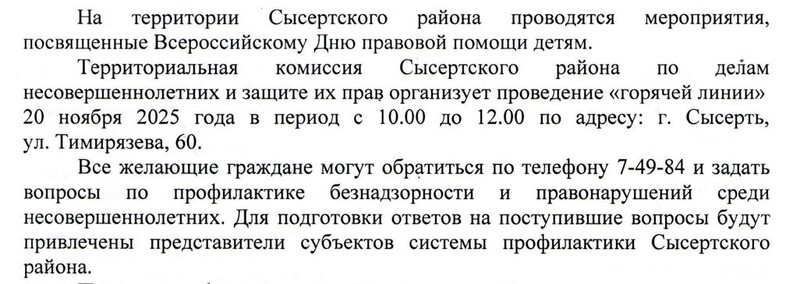 20 ноября 2025 года проводится Всероссийский День правовой помощи детям.